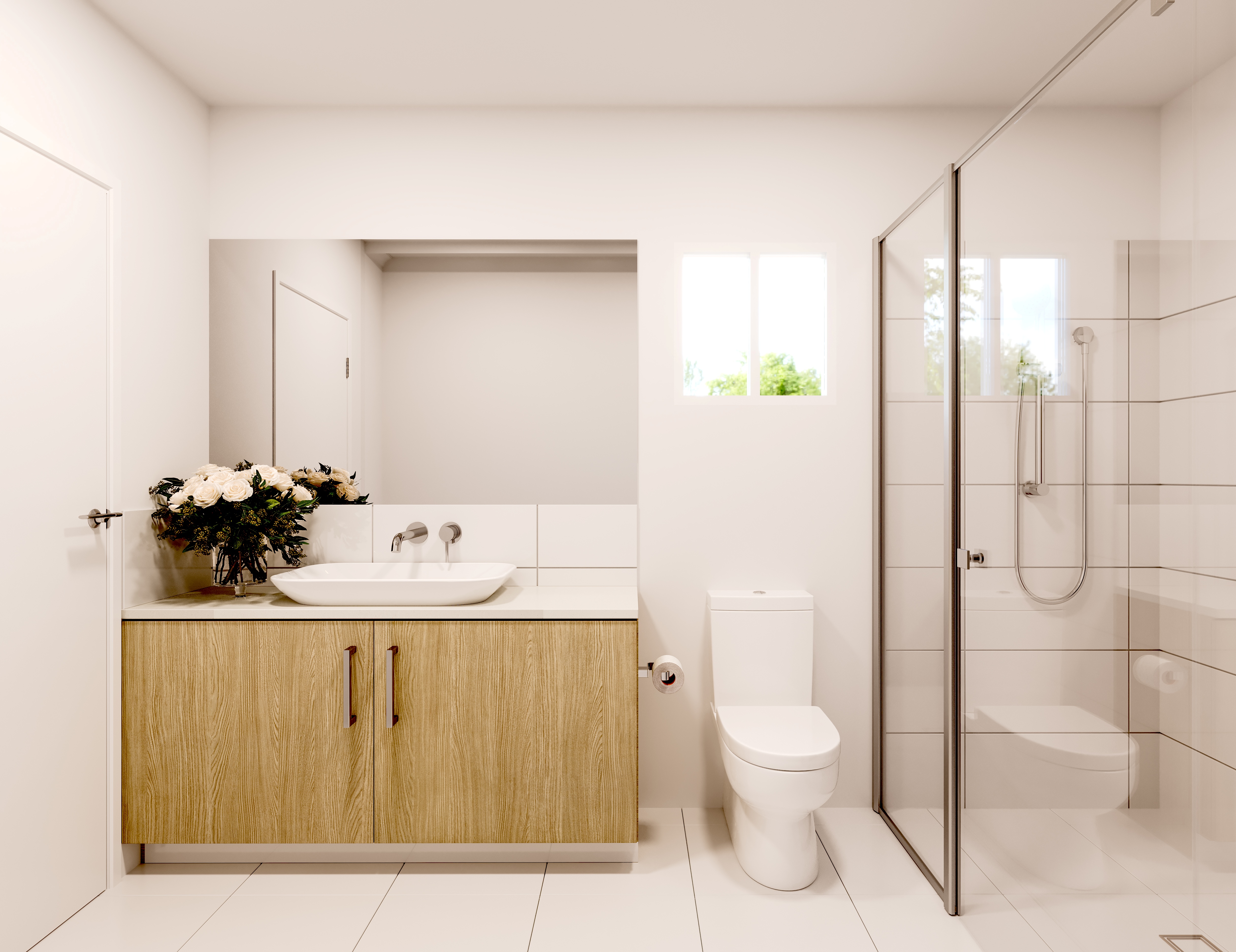 - Stylish 450mm x 450mm tiles throughout wet areas